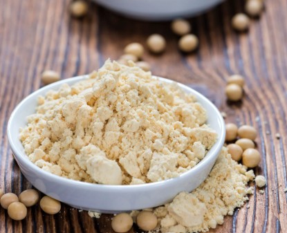 Adicione uma ou duas colheres de sopa de farinha de soja integral em sucos ou vitaminas para um impulso adicional de proteína e fibras.